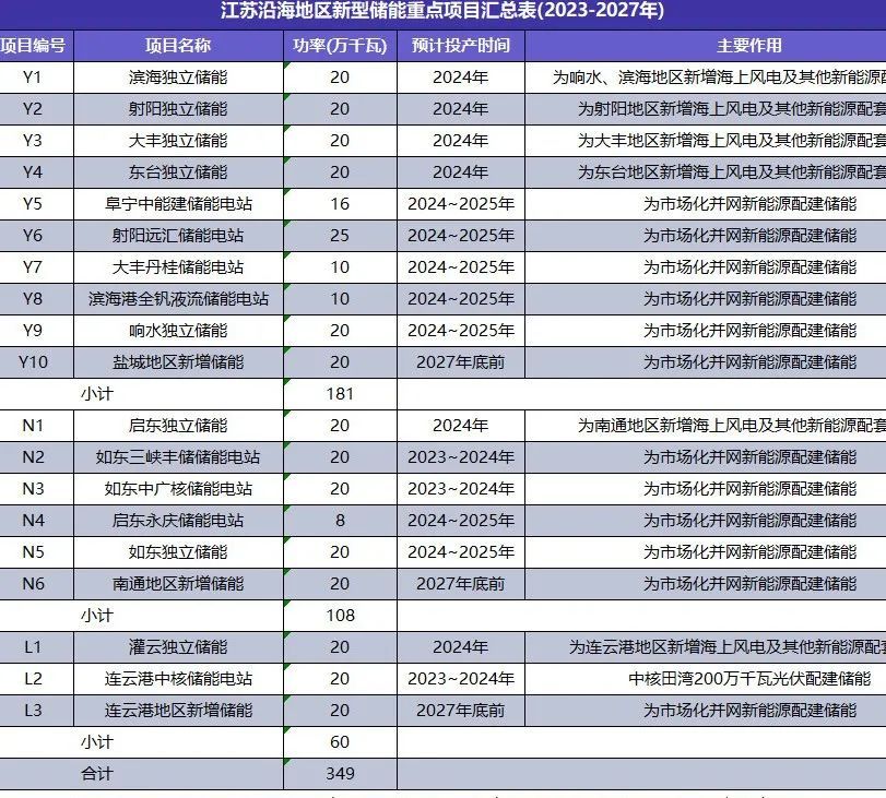 在沿海地區(qū)重點(diǎn)開展 19個(gè) 大型新型儲(chǔ)能項(xiàng)目的規(guī)劃布局工作,項(xiàng)目規(guī)??傆?jì) 349萬千瓦, 其中: