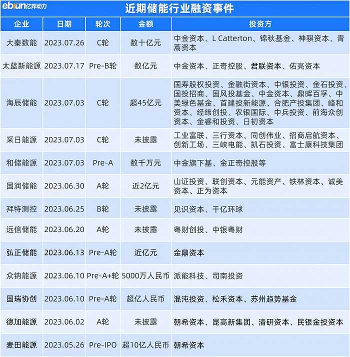 7月27日,儲能科技公司大秦數(shù)能完成B輪及C輪融資,B輪融資由優(yōu)山資本領(lǐng)投,C輪融資由中金資本旗下基金領(lǐng)投,華興資本擔任財務顧問,累計融資金額數(shù)十億元。