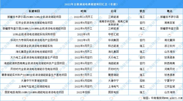 全釩液流電池具有響應(yīng)快、安全環(huán)保、壽命長(zhǎng)、規(guī)模大等特點(diǎn),適合長(zhǎng)時(shí)儲(chǔ)能,市場(chǎng)發(fā)展空間廣闊。2022年,我國(guó)全釩液流電池儲(chǔ)能項(xiàng)目中,建成項(xiàng)目5個(gè),在建項(xiàng)目14個(gè)。