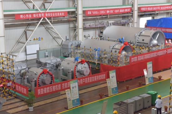 “我宣布:全球首套非補(bǔ)燃型300MW級(jí)壓縮空氣儲(chǔ)能項(xiàng)目核心裝備壓縮機(jī)組下線發(fā)運(yùn)!”伴隨著陜西鼓風(fēng)機(jī)(集團(tuán))有限公司(以下簡(jiǎn)稱“陜鼓”)黨委書記、董事長,陜鼓動(dòng)力董事長李宏安的一聲號(hào)令,首批裝載著8臺(tái)套“大國重器”壓縮空氣儲(chǔ)能核心裝備的四輛大型貨運(yùn)車輛從陜鼓總裝車間寬闊的大門緩緩駛出,標(biāo)志著世界級(jí)非補(bǔ)燃?jí)嚎s空氣儲(chǔ)能示范工程項(xiàng)目取得了階段性成果。