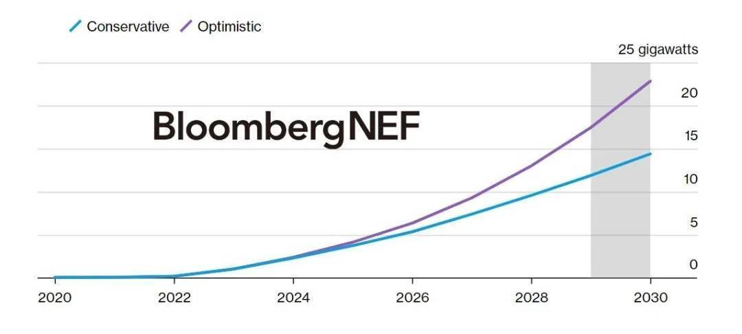 圖:中國液流電池裝機(jī)規(guī)模預(yù)測(彭博新能源財(cái)經(jīng))