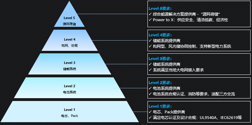第一層是電芯和PACK提供商,主要聚焦產(chǎn)品性能提升和認(rèn)證的準(zhǔn)入,通過海外市場認(rèn)證,就可以供應(yīng)給系統(tǒng)集成商;第二層是電池系統(tǒng)提供商,聚焦交流系統(tǒng)的適配和產(chǎn)品標(biāo)準(zhǔn)化,在通過認(rèn)證之外,還要做好安全和消防等方面的設(shè)計,主要面向還是系統(tǒng)集成商;第三層次是儲能系統(tǒng)供應(yīng)商,需要在電網(wǎng)準(zhǔn)入、后期運(yùn)維兩個方面滿要求。
