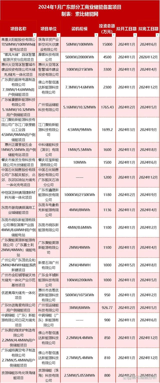 1月,廣東省完成的13個(gè)產(chǎn)業(yè)類項(xiàng)目涉及儲(chǔ)能系統(tǒng)集成、鋰電池、PACK產(chǎn)線、儲(chǔ)能變流器、儲(chǔ)能集裝箱等儲(chǔ)能產(chǎn)業(yè)鏈的多個(gè)領(lǐng)域。其中有明確信息的10個(gè)項(xiàng)目中,投資額過億的有6個(gè),新明海用戶側(cè)儲(chǔ)能設(shè)備項(xiàng)目金額最大,達(dá)7.5億元,該項(xiàng)目搭建了一條年設(shè)計(jì)產(chǎn)能約100萬臺(tái)/套的便攜式儲(chǔ)能電源、商用/戶用儲(chǔ)能電源等產(chǎn)品的生產(chǎn)線。