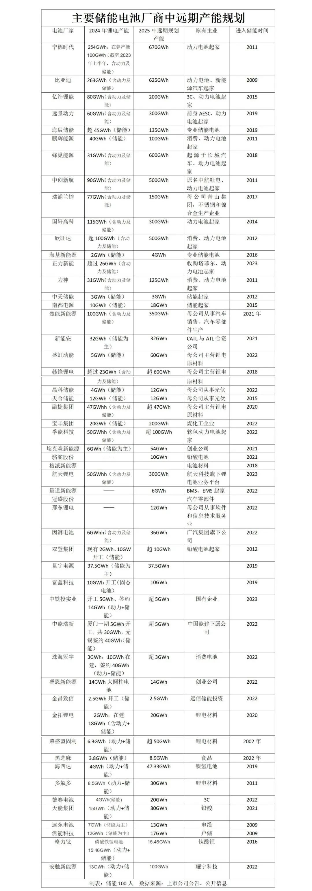 第一股勢力是動力電池企業(yè)。超30家主流動力電池企業(yè)“殺入”儲能電池賽道,并成為了儲能電池的“中流砥柱”。寧德時代、比亞迪、瑞浦蘭鈞、億緯鋰能、遠景動力、國軒高科、欣旺達等動力“悍將”紛紛加碼儲能電池。