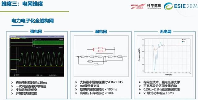 第三個創(chuàng)新維度就是電網(wǎng)側(cè)?,F(xiàn)在的電力電子化,不管是光伏也好,儲能也好,對電網(wǎng)提出很大挑戰(zhàn)。當(dāng)前的一個構(gòu)網(wǎng),我們提出在強(qiáng)電網(wǎng)、弱電網(wǎng)甚至無電網(wǎng)的情況下面,新型儲能如何適應(yīng)電網(wǎng)的各種需求。