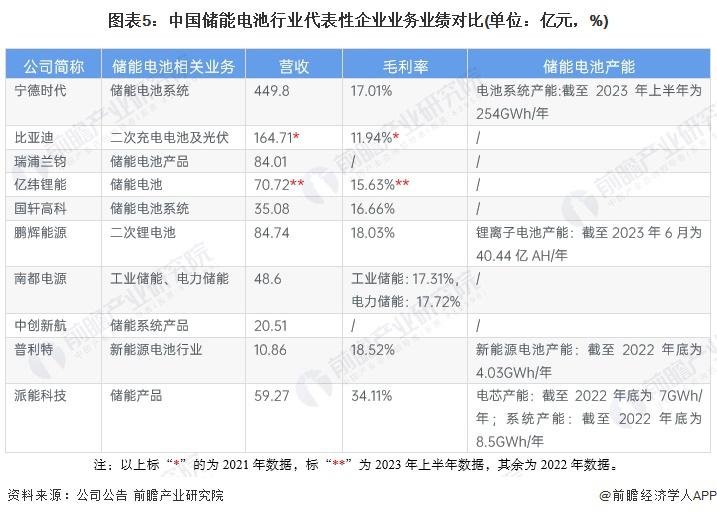 儲能電池行業(yè)代表性企業(yè)業(yè)務(wù)業(yè)績情況