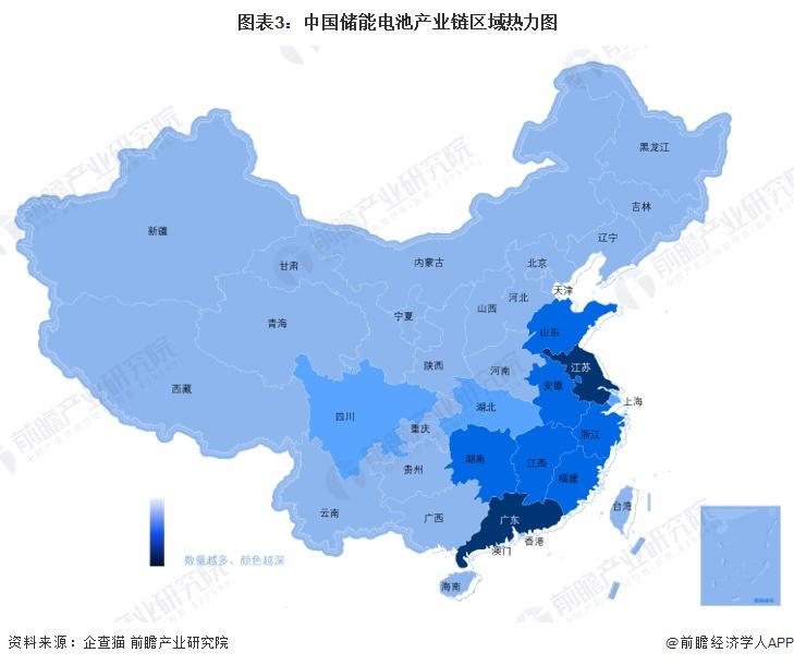儲能電池產(chǎn)業(yè)鏈區(qū)域熱力地圖:廣東、江蘇企業(yè)分布最多