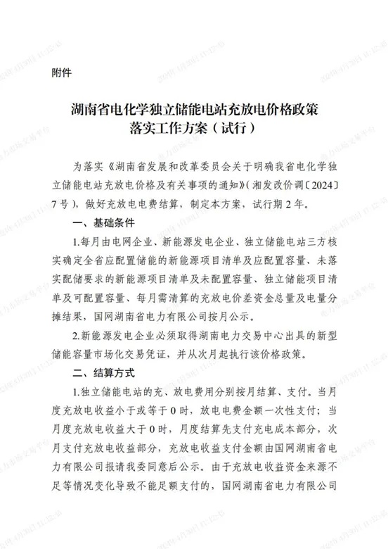 近日,湖南發(fā)改委發(fā)布《湖南省發(fā)展和改革委員會關于落實我省電化學獨立儲能電站充放電價格政策有關工作的通知》,并隨通知下發(fā)了《湖南省電化學獨立儲能電站充放電價格政策落實工作方案》。