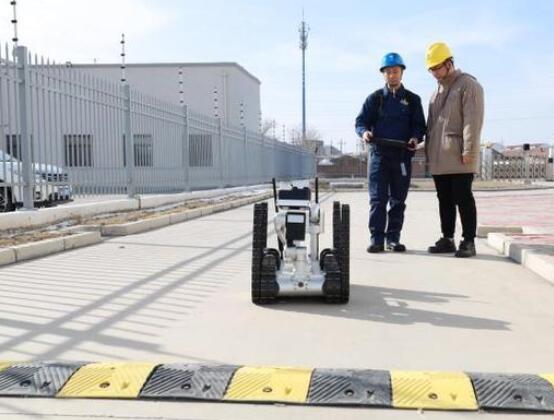 國網(wǎng)天津電科院研發(fā)團(tuán)隊(duì)自主研制的電力設(shè)備遙控探測機(jī)器人近日在研發(fā)基地開展功能測試。國網(wǎng)天津市電力公司供圖