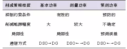 文獻(xiàn)[6]在結(jié)合文獻(xiàn)[5]研究成果的基礎(chǔ)上,描述了如何在規(guī)劃之中考慮不同的動(dòng)態(tài)削減發(fā)電出力方法。不同削減策略的比較如表1所示,文中利用測(cè)量功率和短期預(yù)測(cè)功率來削減DG發(fā)電出力,證明了在簡(jiǎn)單地削減DG發(fā)電出力的情形下,很容易保證電網(wǎng)運(yùn)行的可靠性,即故障發(fā)生前就可以被修復(fù)。在分布式能源提供更多系統(tǒng)服務(wù)(如電壓平衡、無功補(bǔ)償?shù)龋┑膹?fù)雜主動(dòng)配電系統(tǒng)區(qū)域內(nèi),則必須采用短期預(yù)測(cè)技術(shù)。