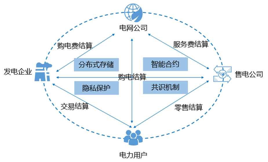 市場化的電費結(jié)算是能源交易的核心業(yè)務(wù),我國的電費結(jié)算技術(shù)開始于1960年,隨后被廣泛應(yīng)用于各行各業(yè)。目前,我國普遍采取“預(yù)購電”方式結(jié)算電費,但這種模式對分布式新能源接入等多種新場景,存在能量流、信息流不統(tǒng)一,交易流程長、響應(yīng)不及時、合同履約難掌控、信用體系難建立等問題。