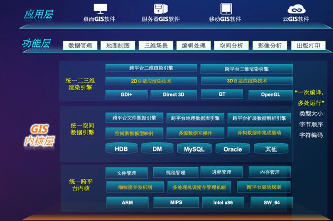 在“雙輪驅動”戰(zhàn)略思想下,MapGIS 10.5 Pro產品應運而生,基于統一的跨平臺內核,實現了全國產化體系架構和X86系統架構的“雙輪驅動”,構建全國產化GIS平臺和全空間智能GIS平臺兩大自主可控產品,延續(xù)MapGIS 10.5云端融合的產品體系,強化九州中國芯,提升全空間智能GIS技術,并推出組件式、搭建式、配置式三大敏捷開發(fā)方式,為用戶提供持續(xù)、穩(wěn)健、高效的技術支撐,為行業(yè)應用賦能。