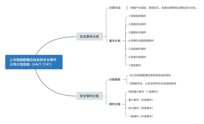 標(biāo)準(zhǔn)主要內(nèi)容:該標(biāo)準(zhǔn)內(nèi)容主要包括安全事件分類、安全事件分級等兩大類。同時(shí),標(biāo)準(zhǔn)還闡述了公安視頻圖像信息系統(tǒng)安全事件分類、基本分類和安全事件分級要素、事件分級等內(nèi)容。詳情如圖: