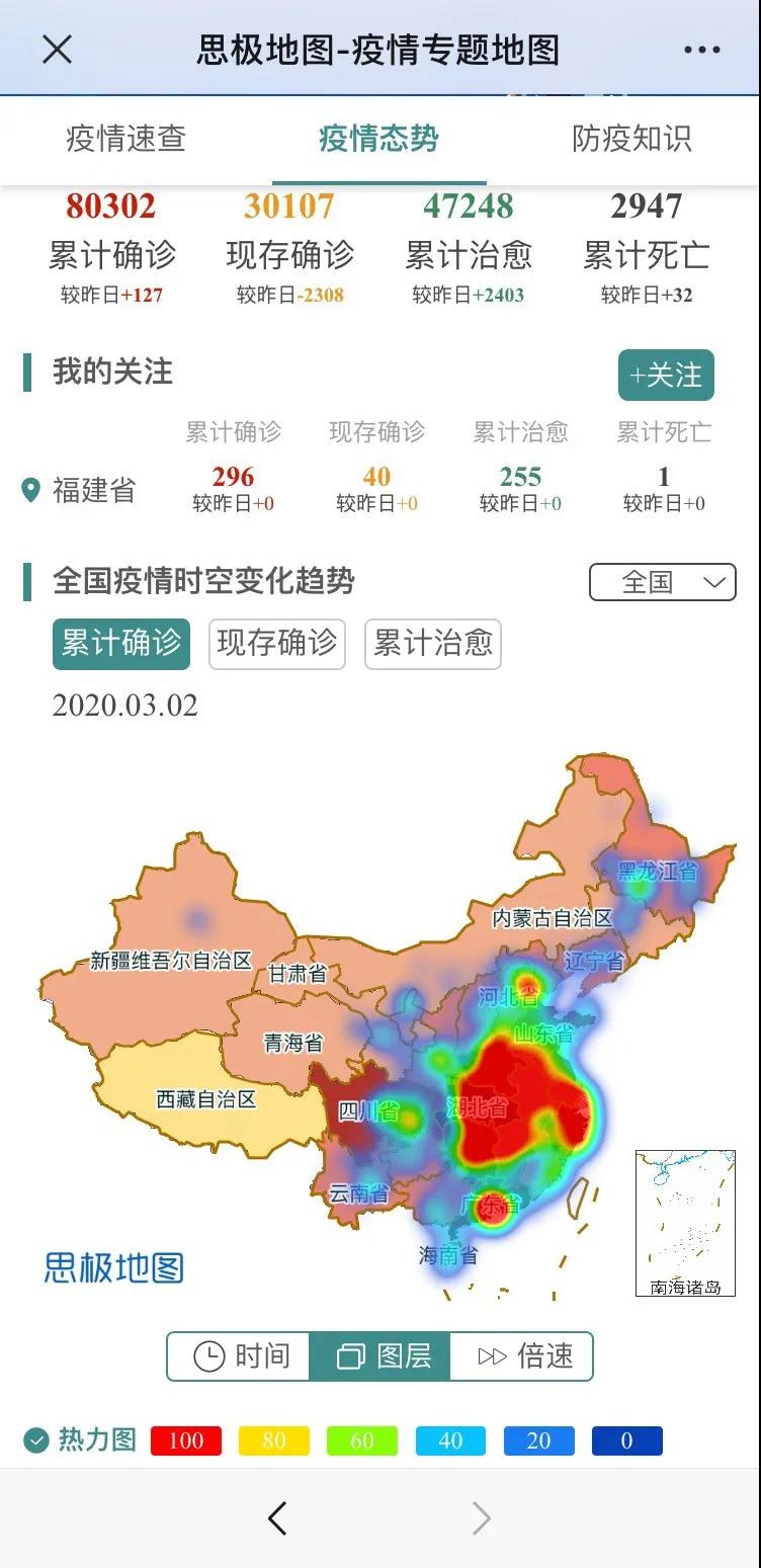 疫情專題地圖可為廣大用戶提供在線的疫情速查、展示疫情時空演進變化、分享科學有效的防疫知識,幫助用戶定位周邊的確診病例,掌握疫情的最新動態(tài),緩解大眾焦慮,支持防疫工作有效開展,筑起一道安全防護墻。