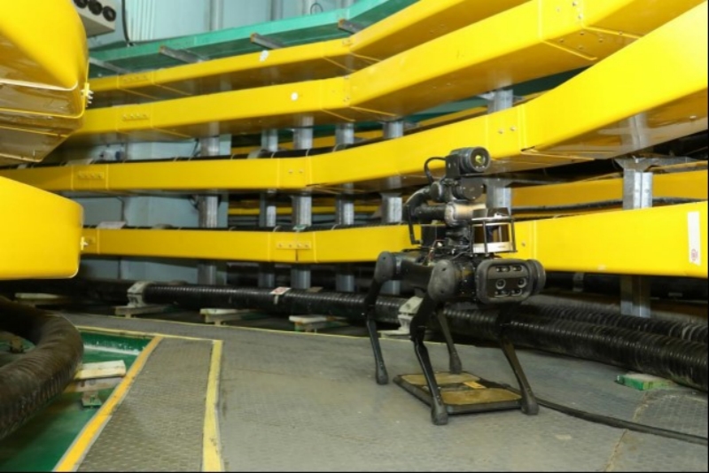 在位于南三環(huán)玉泉營(yíng)的電力隧道內(nèi),一臺(tái)搭載感知設(shè)備機(jī)械臂的四足隧道巡檢機(jī)器人正沿著規(guī)劃好的巡檢路徑,對(duì)地下電力隧道環(huán)境及設(shè)備開展自主巡檢。