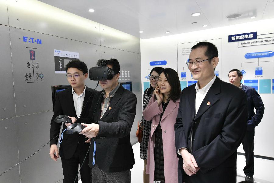 佩戴VR眼鏡即可揭開智能配電房神秘的面紗,享受沉浸式的觀影體驗(yàn);在書房通過手指觸動(dòng)“跳一跳”游戲即可身臨其境體驗(yàn)一度電的使用過程......這些以往只能在腦海里幻想的場景,如今變得可觀可感。