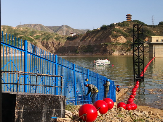今年的此次維修工程于6月12日開工。工作中,現(xiàn)場首先按照防疫工作要求,確保所有施工人員防疫安全和身體健康;其次,嚴格抓好安全措施的落實,針對當天的工作任務,班前會明確具體安全防控措施,嚴格進行作業(yè)船只安全檢查和作業(yè)人員救生衣穿著安全檢查;三是緊盯工程質量和工期,對壩前損壞的30個浮球盯著進行了新浮球的徹底更換,對輕微有損傷無需更換的舊浮球監(jiān)督進行了修補,隨后整體進行了刷漆防腐處理,對變形的浮箱軸銷及繩卡進行了維修,對400米鋼絲繩進行了清掃涂抹黃油保養(yǎng),對鋼塔架基礎和滑道進行防腐處理,確保了整個系統(tǒng)各部件再檢查、維修和保養(yǎng)。
