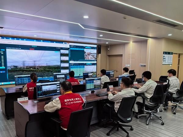 圖說:上海電網(wǎng)輸電數(shù)字化監(jiān)控中心值班人員通過遠程可視化系統(tǒng)開展重要輸電線路巡視