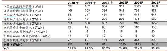 圖:全球鋰電池(含儲能)需求估計。資料來源:GGII、EVTank、招商證券