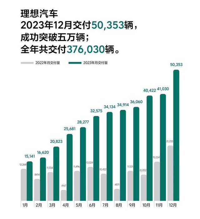 理想汽車2023年交付數(shù)據(jù) 數(shù)據(jù)來(lái)源:官網(wǎng)