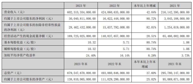 3月26日晚,比亞迪披露2023年年報(bào)。報(bào)告期內(nèi),比亞迪實(shí)現(xiàn)營業(yè)收入6023.15億元,同比增長(zhǎng)42.04%;實(shí)現(xiàn)歸母凈利潤300.41億元,同比增長(zhǎng)80.72%,經(jīng)營性現(xiàn)金流凈額1697.25億元,均創(chuàng)歷史新高。