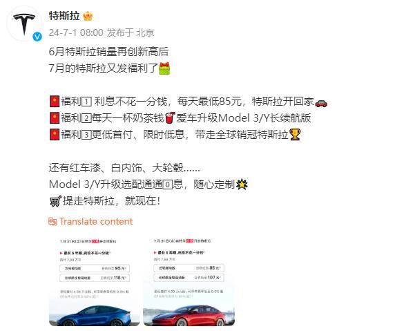 7月31日前,針對Model 3/Y標準續(xù)航版推出的1~5年0息和低息優(yōu)惠購車政策,日供低至85元起;針對Model 3/Y長續(xù)航全輪驅(qū)動版推出的1~5年0息和低息購車優(yōu)惠政策,日供低至107元起;特斯拉將7月限時低息的年費率降至0.5%起(折合年化利率0.93%起)。