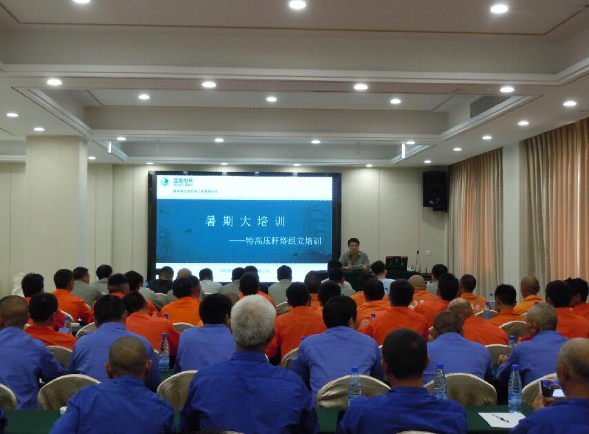 為確保工人正確使用和維護(hù)該型抱桿,7月17日至18日,白鶴灘~江蘇±800千伏特高壓直流輸電線路工程(鄂7標(biāo)段)立塔作業(yè)前,鄂電“鐵軍”組織即將進(jìn)場(chǎng)施工的17個(gè)作業(yè)層班組100人,開(kāi)展為期兩天的理論學(xué)習(xí)、實(shí)操培訓(xùn)暨桿塔組立首基試點(diǎn)。培訓(xùn)圍繞落地雙搖臂抱桿使用注意事項(xiàng)、落地抱桿使用組塔要點(diǎn)及安全控制措施等內(nèi)容展開(kāi)。抱桿、絞磨生產(chǎn)廠家技術(shù)人員和該公司施工管理部、設(shè)備租賃分公司相關(guān)人員通過(guò)理論授課和現(xiàn)場(chǎng)實(shí)操演練結(jié)合的方式對(duì)抱桿的構(gòu)件、性能參數(shù)以及安裝使用流程進(jìn)行全面介紹,并針對(duì)作業(yè)人員提出的問(wèn)題作了細(xì)致解答。