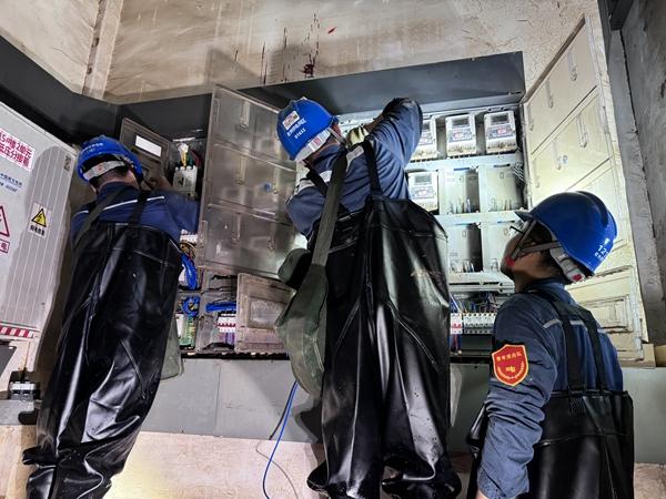 6月22日,南方電網(wǎng)廣西欽州供電局與桂林、北海供電局的黨員突擊隊員并肩作戰(zhàn),為桂林市萬達翰林府小區(qū)群眾接入應急電源。王代高攝