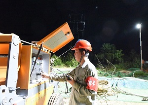 中國電力網(wǎng)訊 8月11日凌晨1時,在武漢黃陂區(qū)蔡家榨街道周里河,由湖北送變電工程有限公司承建的武漢1000千伏變電站配套500千伏線路送出工程N(yùn)30-N31跨越滬蓉高鐵架線施工現(xiàn)場, 面臨高鐵“空窗”時間極短、氣溫炎熱等困難,該公司加強(qiáng)事前籌劃和作業(yè)中安全管控督導(dǎo),運(yùn)用集控智能可視化系統(tǒng)對牽張設(shè)備進(jìn)行操作和監(jiān)控,投入無人機(jī)空中照明系統(tǒng)等新裝備助力夜間施工,地面人員認(rèn)真展放導(dǎo)線,鐵塔上的工人一絲不茍進(jìn)行高空作業(yè),全體施工人員密切協(xié)同,打響夜間施工攻堅戰(zhàn)。(郭暉、余幫節(jié))