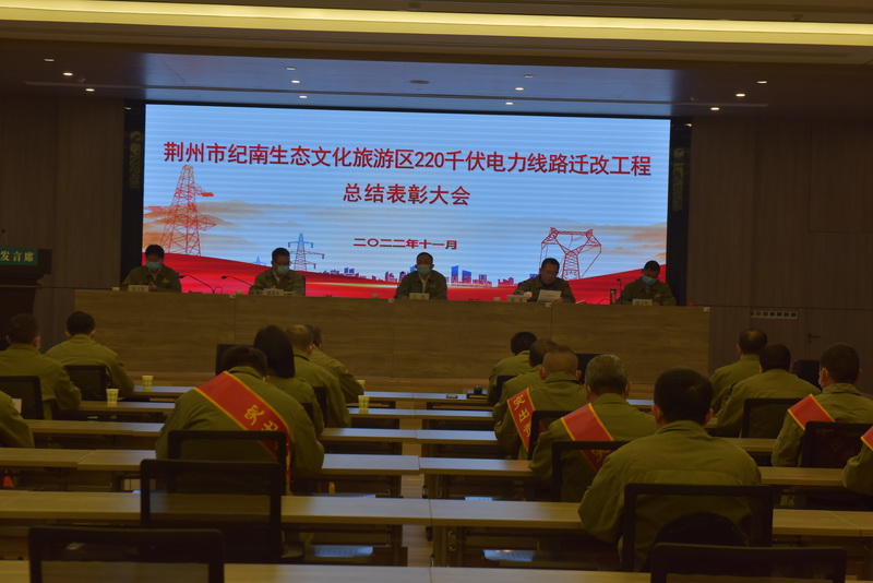 中國電力網(wǎng)訊 2022年11月16日,湖北荊力電力集團(tuán)生產(chǎn)基地會(huì)議室,氣氛熱烈而莊重。“荊州文旅區(qū)220千伏線路遷改工程總結(jié)表彰大會(huì)”的巨幅標(biāo)語格外醒目。