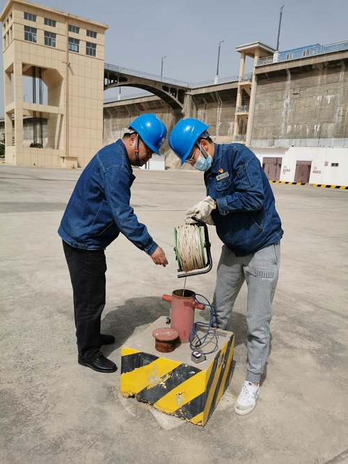 劉家峽水電站大壩的安全直接決定著下游數(shù)百萬民眾的生命財產(chǎn)安全,自該項工程開始施工便同步開展大壩觀測,按照水工安全規(guī)程與觀測規(guī)程要求,進行變形監(jiān)測、滲流觀測和應力應變觀測,并對觀測數(shù)據(jù)定期整編與統(tǒng)計分析,為大壩定期檢查、鑒定提供依據(jù)。左右岸繞壩滲流水位孔測點分布在山坡上,數(shù)量多且分布范圍分散,因此測量難度非常大,人工測量不僅是體力活也是需要耐心和細心的活。“測鐘”是此次測量的重要設備,利用測鐘觸碰水面?zhèn)骰貋淼?ldquo;咚”聲音來測量水位,有些地下水位孔深達90m,用測鐘測量已經(jīng)聽不到回聲,測一個深孔就得半個小時,一百多個測點,幾十米的水深,一組“測鐘”加上線重量達十多斤,李亞洲提著“測鐘”行走在左右岸山坡間,每天天亮就上班月亮升起才下班,就這樣連續(xù)工作多天終于完成了所有地下水位孔的測量工作。