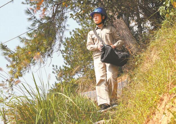 黃麗英負責巡檢的3條10千伏線路總長19千米、0.4千伏線路總長39千米。雖然線路不算長,但這些10千伏線路穿過海拔800多米的大山,線路廊道處于深山中,覆蓋區(qū)域生長著茂盛的桉樹。她從一座山再到另一座山要用4小時以上。