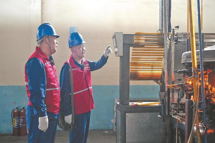 國(guó)家電網(wǎng)河北電力(大運(yùn)河)共產(chǎn)黨員服務(wù)隊(duì)隊(duì)員來(lái)到滄州星辰玻璃制品有限公司幫忙排查生產(chǎn)設(shè)備安全隱患。買(mǎi)坤 攝