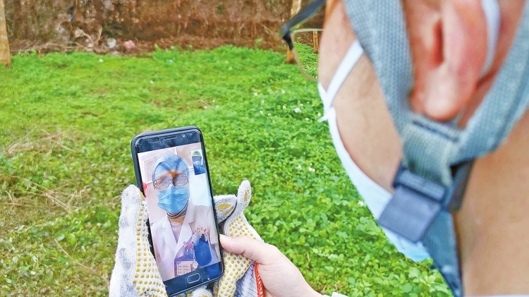 微信視頻問(wèn)候是黃勁與妻子馬麗桂倆近期唯一的溝通方式。陳伯鑫 攝