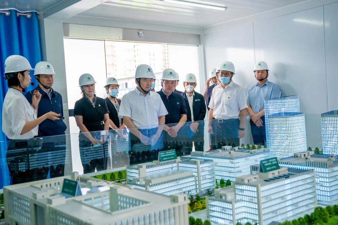 賈振國在項目施工現(xiàn)場,詳細詢問了解智慧工地指揮中心、項目標準化流程、安全生產措施、工程項目進度等情況,并召開座談會,現(xiàn)場研究解決工程推進中存在的問題。