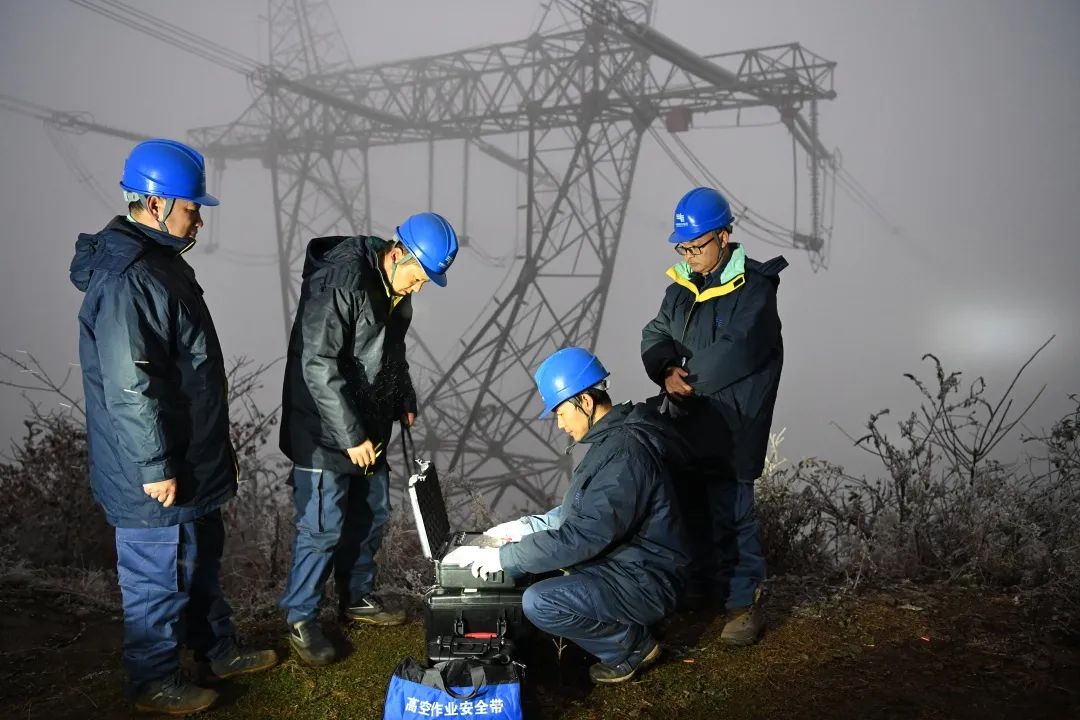 南方電網(wǎng)貴州畢節(jié)供電局工作人員使用地線融冰自動裝置進(jìn)行融冰工作。(南網(wǎng)報記者 周志旺 通訊員 梅波 羅凱 攝)