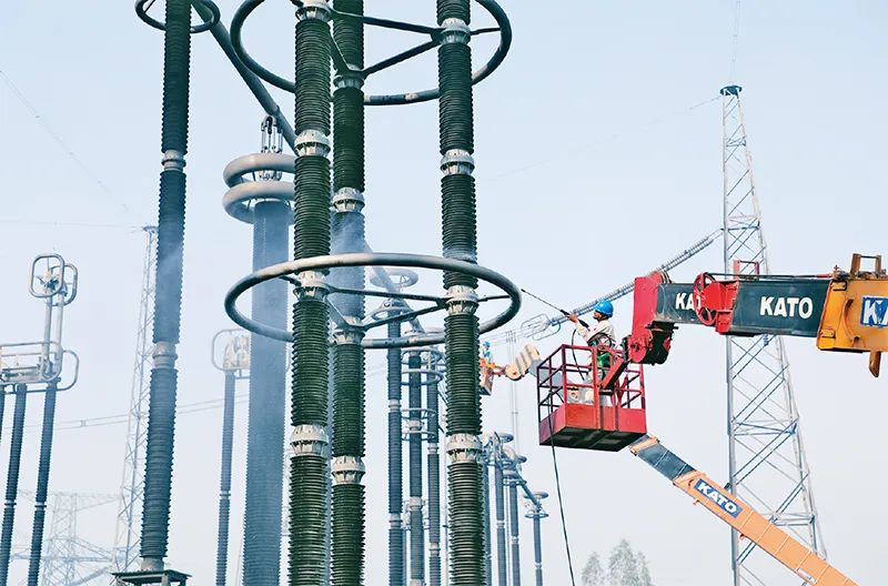 圖為2024年3月1日,該工程開展綜合檢修,工作人員在沖洗絕緣子。國家電網(wǎng)黨組宣傳部供圖