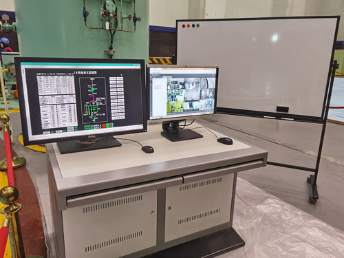 原來,桌子上擺放著兩臺(tái)顯示器,旁邊還立了一面大白板。左邊一臺(tái)顯示器接入了網(wǎng)頁版南瑞NC3.0-Web瀏覽系統(tǒng),登錄后即可直觀查看1號(hào)機(jī)組試驗(yàn)過程中的各部參數(shù),緩解了以前做試驗(yàn)時(shí)人員全部“扎堆”在監(jiān)控系統(tǒng)盤柜旁的擁擠狀況,并且使用鼠標(biāo)操作輕松方便,切換畫面快速準(zhǔn)確,參數(shù)瀏覽盡收眼底,解決了在下位機(jī)觸摸屏用手指翻頁查看的不便之處。右邊一臺(tái)顯示器接入了網(wǎng)頁版綜合安防管理平臺(tái),此平臺(tái)是全廠主輔設(shè)備的“千里眼”,即遙視系統(tǒng)。有了它,1號(hào)機(jī)做試驗(yàn)時(shí)就可以通過攝像頭清楚查看各部件的實(shí)時(shí)運(yùn)行情況,尤其是水車室、人孔門等重點(diǎn)部位,避免了人員跑上跑下造成的時(shí)間和精力上的浪費(fèi)。最后說說這塊大白板,在現(xiàn)場(chǎng),不僅可以張貼試驗(yàn)方案,列出重要時(shí)間節(jié)點(diǎn)和重要試驗(yàn)數(shù)據(jù),使整個(gè)試驗(yàn)處于顯而易見的可控狀態(tài),還可以隨時(shí)隨地開展“頭腦風(fēng)暴”,分析試驗(yàn)過程中遇到的問題,集思廣益提出最優(yōu)解決方案。原來,這是一臺(tái)“開機(jī)試驗(yàn)調(diào)度臺(tái)”,是該廠電氣分場(chǎng)自動(dòng)班黨員積極開展智能化創(chuàng)新,充分發(fā)揮聰明才智的成果,如今已正式投入使用,真正成為了1號(hào)機(jī)組動(dòng)態(tài)試驗(yàn)的有力“幫手”。