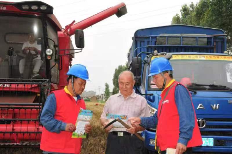 在沁陽市道口村的小麥搶收現(xiàn)場,共產(chǎn)黨員服務(wù)隊(duì)員深入田間地頭,向廣大農(nóng)民朋友和收割機(jī)駕駛員發(fā)放電力設(shè)施保護(hù)宣傳資料,提高群眾安全用電和電力設(shè)施保護(hù)意識(shí)。