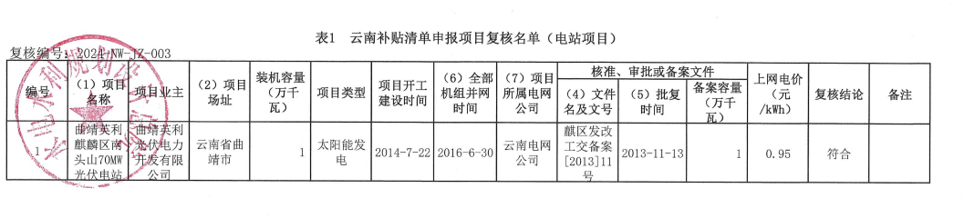 根據(jù)《財政部辦公廳關(guān)于開展可再生能源發(fā)電補(bǔ)貼項目清單審核有關(guān)工作的通知》(財辦建〔2020〕6號)和《國家可再生能源信息管理中心關(guān)于可再生能源發(fā)電補(bǔ)貼項目清單申報與審核工作有關(guān)要求的公告》等文件要求,相關(guān)可再生能源發(fā)電企業(yè)對滿足條件的可再生能源發(fā)電項目進(jìn)行補(bǔ)貼清單申報,經(jīng)云南電網(wǎng)初審、云南省能源局審核確認(rèn)、國家可再生能源信息管理中心復(fù)核?,F(xiàn)將國家可再生能源信息管理中心復(fù)核通過的云南補(bǔ)貼清單申報項目復(fù)核名單(電站項目)予以公示。