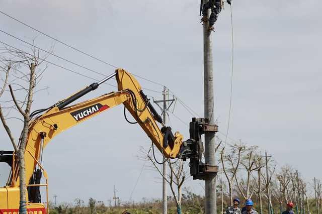 這個“龐然大物”就是配網(wǎng)立桿一體機,被稱為“種桿機器人”。此次援瓊,南方電網(wǎng)廣西電網(wǎng)公司共調(diào)集6臺“種桿機器人”,分別在文昌市鋪前鎮(zhèn)、錦山鎮(zhèn)、馮坡鎮(zhèn)、公坡鎮(zhèn)、昌灑鎮(zhèn)等地開展搶修作業(yè)。
