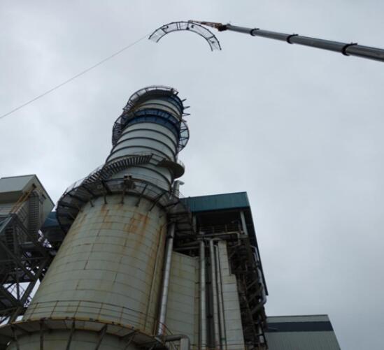 中國電力網(wǎng)訊 9月28日上午許,130T起重吊車加兩節(jié)長臂在#1余熱鍋爐煙囪周圍地面現(xiàn)場組裝完成,標示著#1-#4余熱鍋爐煙囪平臺斜撐更換開啟起吊新模式。