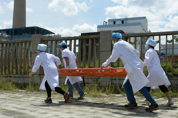 演練以該公司老機(jī)3號(hào)主變壓器異常保護(hù)動(dòng)作跳閘,變壓器冒煙起火展開,運(yùn)值班員第一時(shí)間撥打電話報(bào)警、向值長(zhǎng)及相關(guān)領(lǐng)導(dǎo)報(bào)告,啟動(dòng)火災(zāi)事故應(yīng)急預(yù)案。同時(shí)按照值長(zhǎng)指令停止運(yùn)行中的設(shè)備并切斷所有相關(guān)設(shè)備電源,迅速利用附近的滅火器組織初起火災(zāi)撲救,等待消防隊(duì)救援。5分鐘后消防隊(duì)趕到現(xiàn)場(chǎng),消防員立即鋪設(shè)消防水帶進(jìn)行滅火,經(jīng)過10多分鐘的緊張戰(zhàn)斗,火災(zāi)被撲滅,演練圓滿結(jié)束。