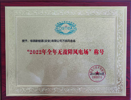 中國(guó)電力網(wǎng)訊(通訊員 王治卿) 金秋八月,捷報(bào)再傳。在控股、大區(qū)及公司黨委的堅(jiān)強(qiáng)領(lǐng)導(dǎo)下, 8月24日,2022年全國(guó)無(wú)故障風(fēng)電場(chǎng)管理成果發(fā)布會(huì)上,萬(wàn)順風(fēng)電場(chǎng)再獲“百日無(wú)故障風(fēng)電場(chǎng)”榮譽(yù),系華潤(rùn)電力首家連續(xù)三年獲此榮譽(yù)風(fēng)電場(chǎng)。