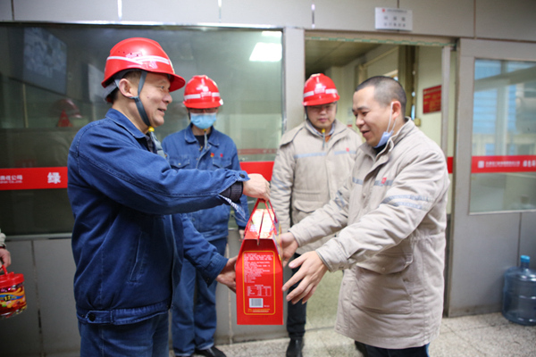 雷小平一行先后來到燃運運行值班室、環(huán)保運行值班室等現(xiàn)場,為生產(chǎn)一線人員送去餅干、糖果等新春慰問品。“值班室工作環(huán)境怎么樣?”“當(dāng)前安全生產(chǎn)任務(wù)重嗎?”“身體和生活狀況如何?”慰問中,雷小平與生產(chǎn)一線人員親切握手,暖心交談,詳細了解了來煤接卸存儲、機組配煤摻燒、環(huán)保運行以及人員值班情況,并對即將啟動的環(huán)保集控室改造項目進行了詳細了解和指導(dǎo)。雷小平傾聽了職工對新年的展望,并為生產(chǎn)一線人員盡忠職守,默默奉獻的精神點贊,叮囑他們節(jié)日期間要加強值班管理,緊繃安全生產(chǎn)之弦不放松,過一個安定、祥和、喜慶的新春佳節(jié)。