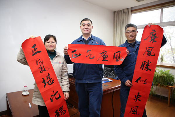 寧柏偉給該公司總經(jīng)部、財(cái)務(wù)部、燃運(yùn)部、思政部、前期辦以及法律(風(fēng)控)事務(wù)部等部門贈送了廉潔春聯(lián)。每到一處,寧柏偉親自將春聯(lián)送到各部門負(fù)責(zé)人手中,并合影留念表達(dá)新年祝福。他談到,此次送廉政春聯(lián)活動,該公司紀(jì)委首次將范圍擴(kuò)大到全體部門,通過開展為部門送廉政春聯(lián)活動,寓教于樂,宣傳廉政紀(jì)律,提醒領(lǐng)導(dǎo)干部員工時(shí)刻繃緊廉潔自律線,清廉、祥和過春節(jié);同時(shí)將廉政文化元素融入春聯(lián)之中,展示了中國傳統(tǒng)文化,以喜慶的形式弘揚(yáng)清風(fēng)正氣,傳遞廉潔正能量。