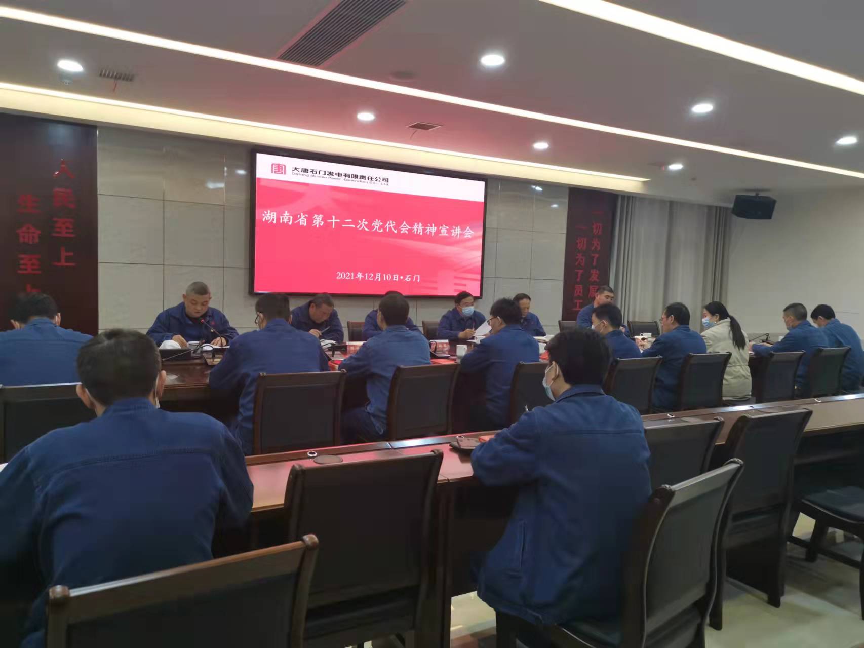 中國(guó)電力網(wǎng)訊 12月10日,大唐石門發(fā)電公司組織召開湖南省第十二次代表大會(huì)精神宣講會(huì)。會(huì)議由該公司黨委書記、總經(jīng)理?xiàng)钊f(wàn)格主持;該公司黨委委員、副總經(jīng)理雷小平,黨委委員、副總經(jīng)理劉陸軍,黨委委員、紀(jì)委書記寧柏偉,黨委委員、總工程師劉子奇出席會(huì)議。該公司項(xiàng)目部火電組負(fù)責(zé)人、湖南省第十二次代表大會(huì)黨代表周陵進(jìn)行了大會(huì)精神宣講。