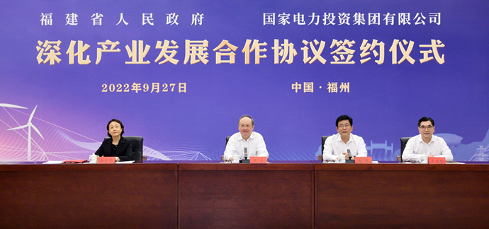 本網(wǎng)訊 9月27日,國(guó)家電投與福建省人民政府通過(guò)視頻方式簽署深化產(chǎn)業(yè)發(fā)展合作協(xié)議。福建省委書(shū)記、省人大常委會(huì)主任尹力,福建省委副書(shū)記、省長(zhǎng)趙龍,國(guó)家電投黨組書(shū)記、董事長(zhǎng)錢(qián)智民出席并見(jiàn)證簽約。福建省委常委、常務(wù)副省長(zhǎng)郭寧寧,國(guó)家電投黨組成員、副總經(jīng)理徐樹(shù)彪分別代表雙方簽署協(xié)議。福建省委常委、省委秘書(shū)長(zhǎng)吳偕林,國(guó)家電投黨組副書(shū)記、董事栗寶卿出席活動(dòng)。