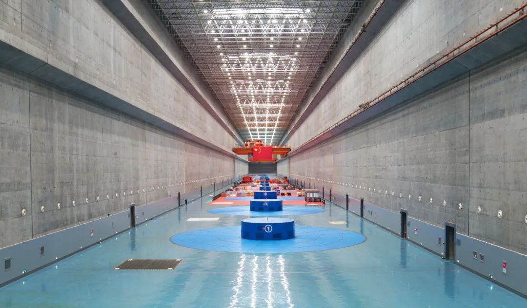 三峽集團長江干流烏東德、白鶴灘、溪洛渡、向家壩、三峽和葛洲壩6座梯級電站,構成了世界最大清潔能源走廊。這條綠色能源走廊,共安裝110臺水輪發(fā)電機組,總裝機容量達7169.5萬千瓦,相當于“三個三峽”的裝機容量,年平均發(fā)電量約3000億千瓦時,可滿足超3億人一年用電需求,每年可節(jié)約標準煤超9000萬噸,減排二氧化碳超2.4億噸。2022年12月20日,白鶴灘水電站全部機組投產(chǎn)發(fā)電,“六庫聯(lián)調(diào)”新格局全面形成,六座電站中有五座是國家“西電東送”戰(zhàn)略骨干電源點。