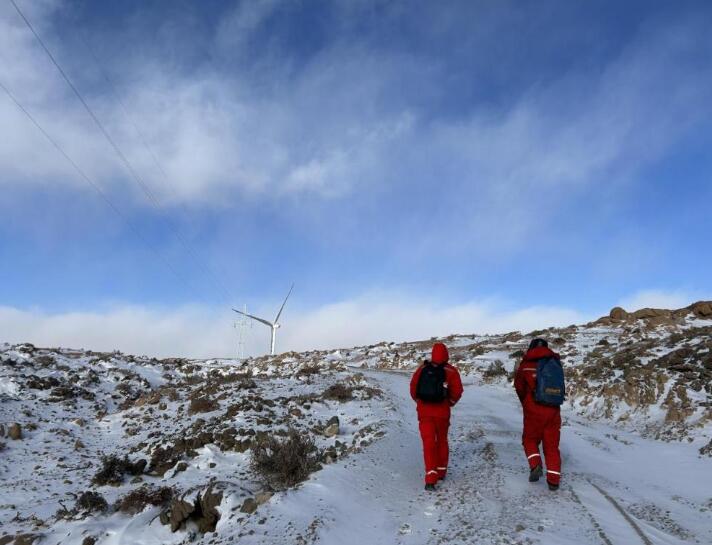 12月以來,華能新能源蒙西分公司都爾勒吉風(fēng)儲(chǔ)電站連續(xù)遭遇多輪降溫暴雪,為保障風(fēng)電機(jī)組持續(xù)安全運(yùn)行,筑牢能源保供防線,青年黨員們逆行而上、徒步前往機(jī)位進(jìn)行風(fēng)機(jī)檢修。